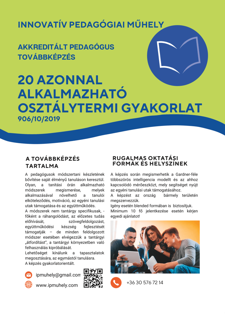 FelfedezésHa szívesen bővítenéd módszertani készleted, várunk 20 azonnal alkalmazható oktatásmódszertani gyakorlat című továbbképzésünkön!